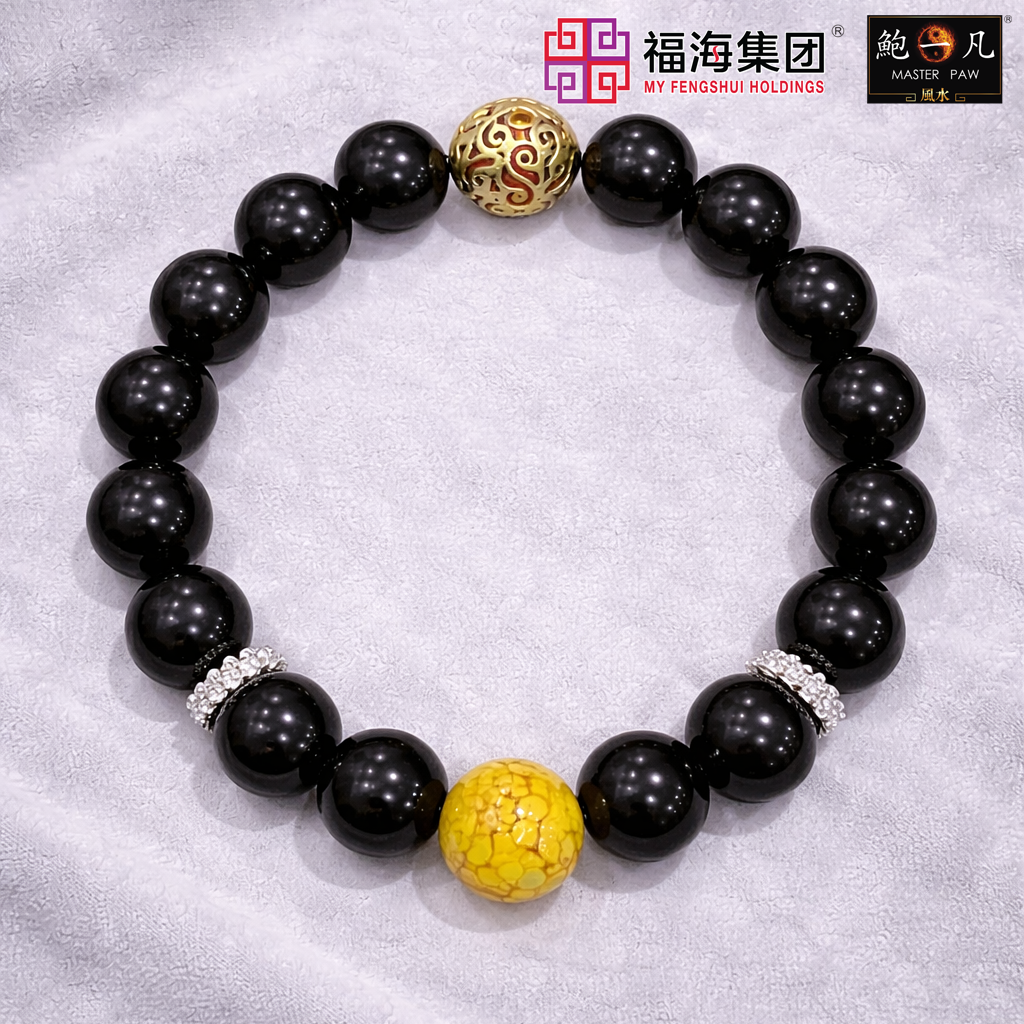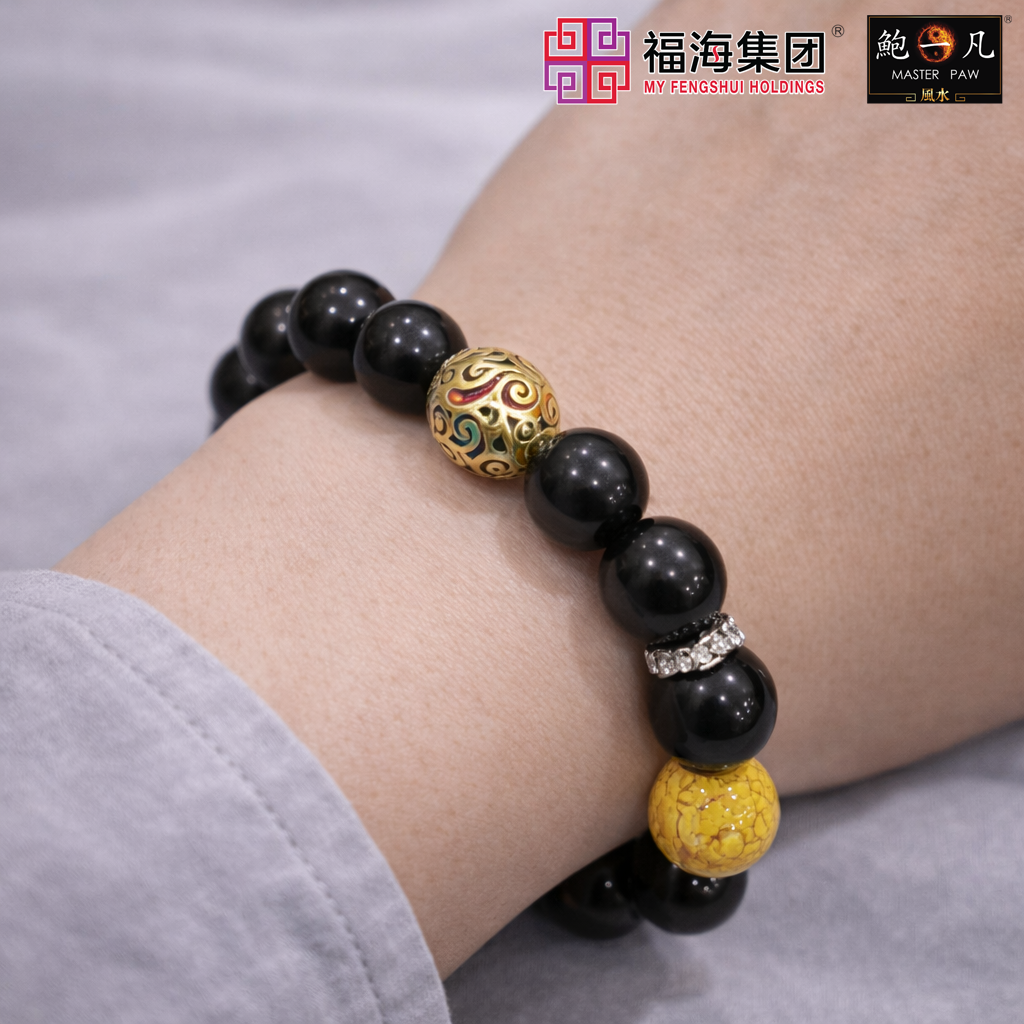 黑曜石圆珠:作为主轴,负责稳定气场、隔离杂扰