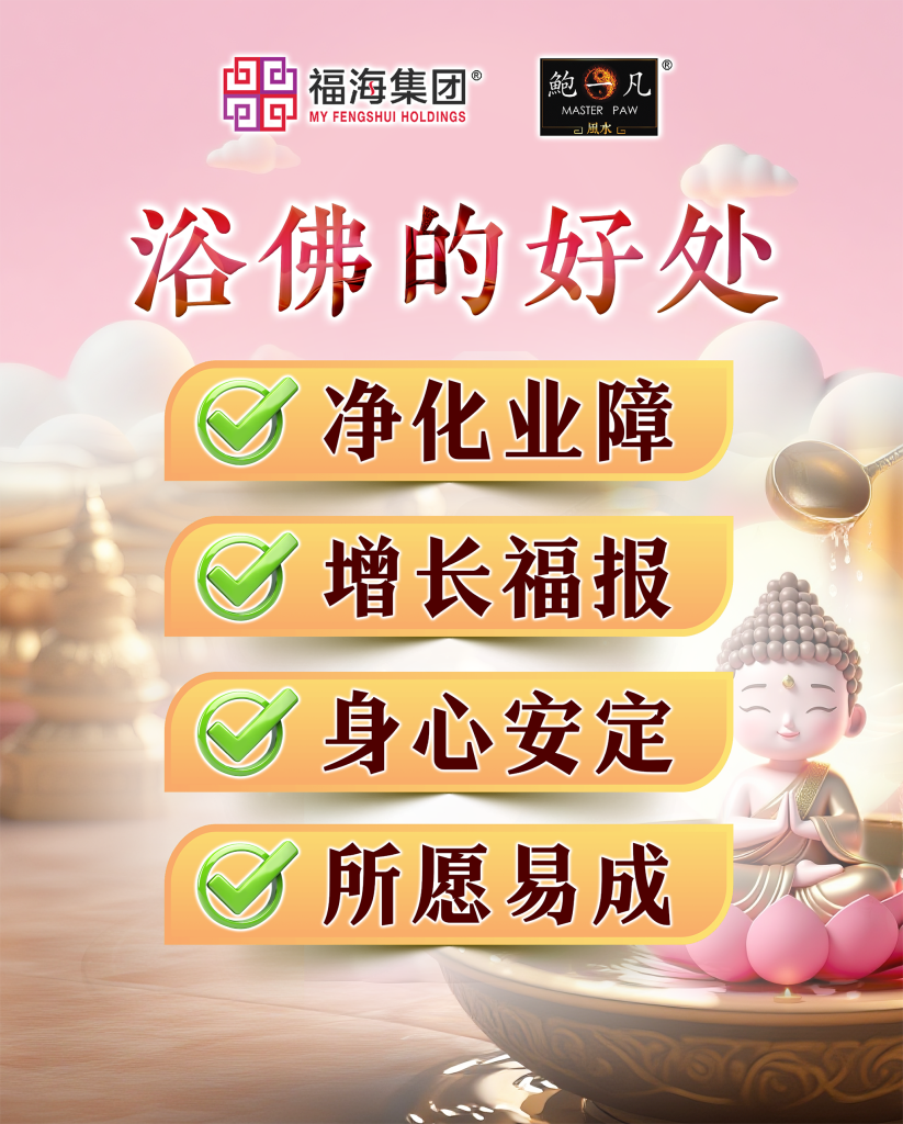 浴佛之水,象征智慧甘露。以此灌沐佛身,能感召内在清净之力,逐渐消融贪、嗔、痴所积累的业障,使原本混浊的运势趋向清明顺畅。