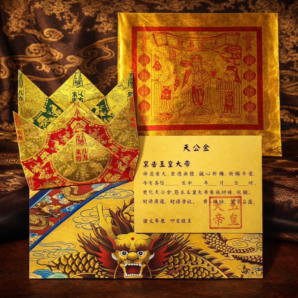 天公金用于敬奉天公、上达天听的正统焚烧金纸天公金,是用于敬奉天公的重要焚烧金纸。在民俗信仰中,天公主掌天时、法度、功过与整体秩序,凡人与天地、神明之间的重要祈告,多以天公为最高呈达。焚烧天公金,象征将心愿正式上达天听,以正名、正心、正序的方式,向天公禀告所求之事。