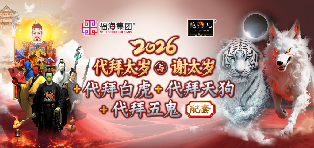 【2026 代拜太岁+代拜白虎+代拜天狗+代拜五鬼配套】是由福海集团特别推出的特别服务配套,您只需以超值优惠就能一次报名参与【2026 代拜太岁与谢太岁】、【2026 代拜白虎服务】,、【代拜天狗】及【代拜五鬼】,不仅划算而且省时省力,您只需填妥资料就能交给我们为您处理一切代拜事宜!