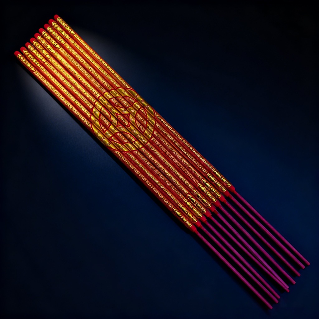 香体以金色为主调,搭配「财多多兴旺」吉祥字样与圆满纹饰,象征财气不断叠加、收入持续增长。香身修长笔直,寓意财路正、来得稳,不偏不漏,使进财之势得以长期延续。