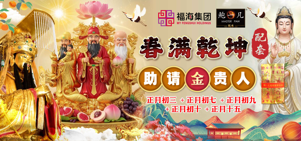 农历正月初三(19/02/2026)、正月初七(23/02/2026)、正月初九(25/02/2026)、正月初十(26/02/2026)和正月十五(03/03/2026),是农历新年的其中五大重要的吉日,分别是拜天地神、人日、天公诞、土神诞以及元宵节和天官大帝圣诞,为了迎接这五个重要日子的到来,福海集团首次推出了这个“春满乾坤助请金贵人配套”,供善信参与,藉着这些日子,为大家请命,祈求金贵人和诸神佛的扶持,春风满面好,人缘财运旺!