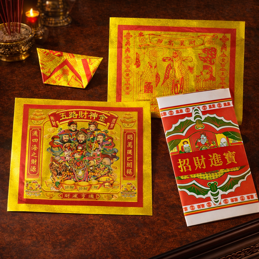 吸财金用于吸纳财气、聚财守财之焚烧金纸吸财金,主要用于吸引正财气场、强化财运磁场,透过焚烧仪式,将外在流动之财气转化为可停留、可累积的财能量。在民间信仰与风水观念中,财气并非只靠“求”,更讲究“吸”与“留”。吸财金象征开启个人与环境的财气入口,让财路更通、财源更稳、进财更自然。