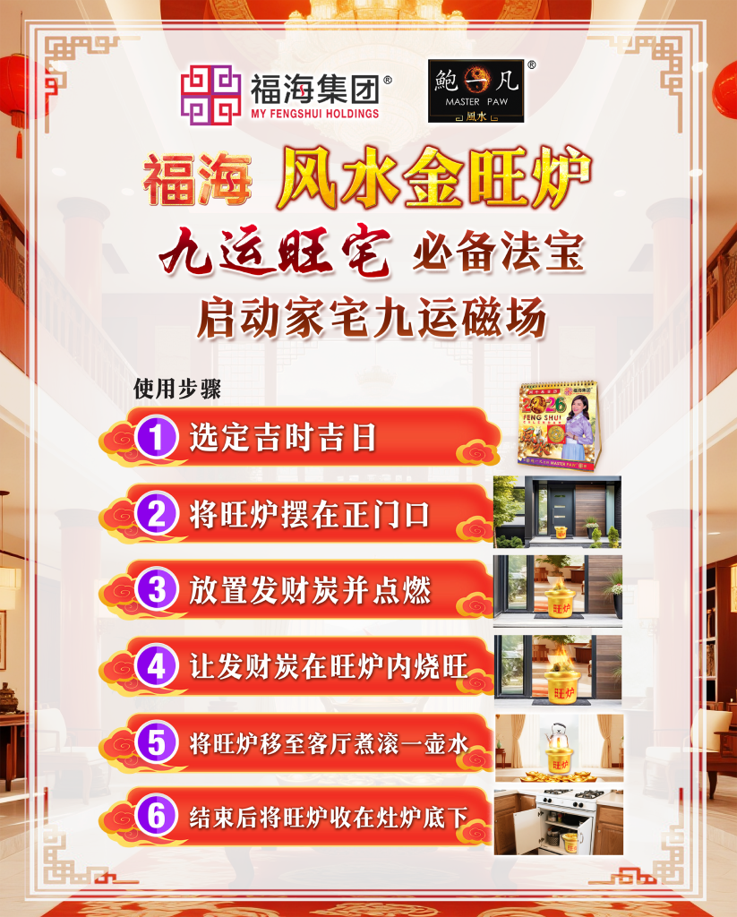 Gold Auspicious Stove is highly recommended by Master Paw, ignite the fire energy of the Period 9 and stabilize your home’s prosperity.