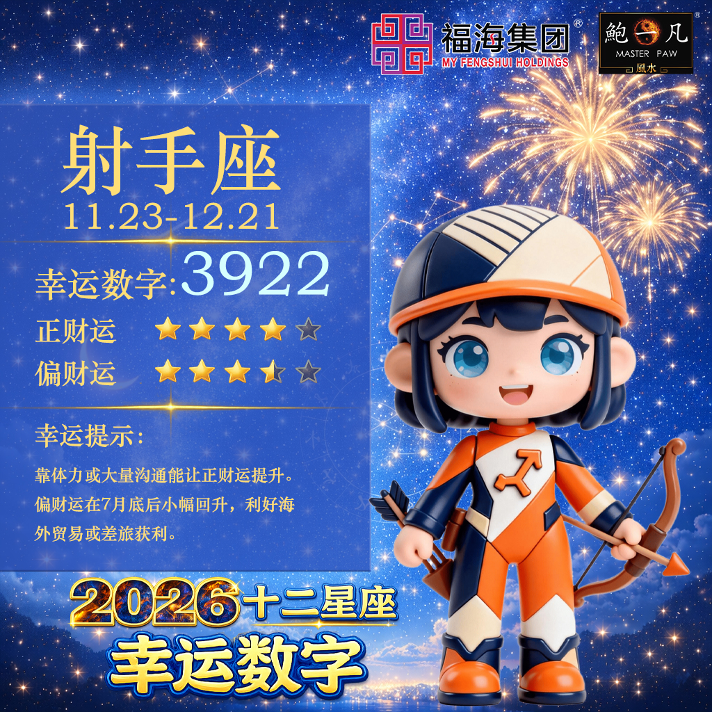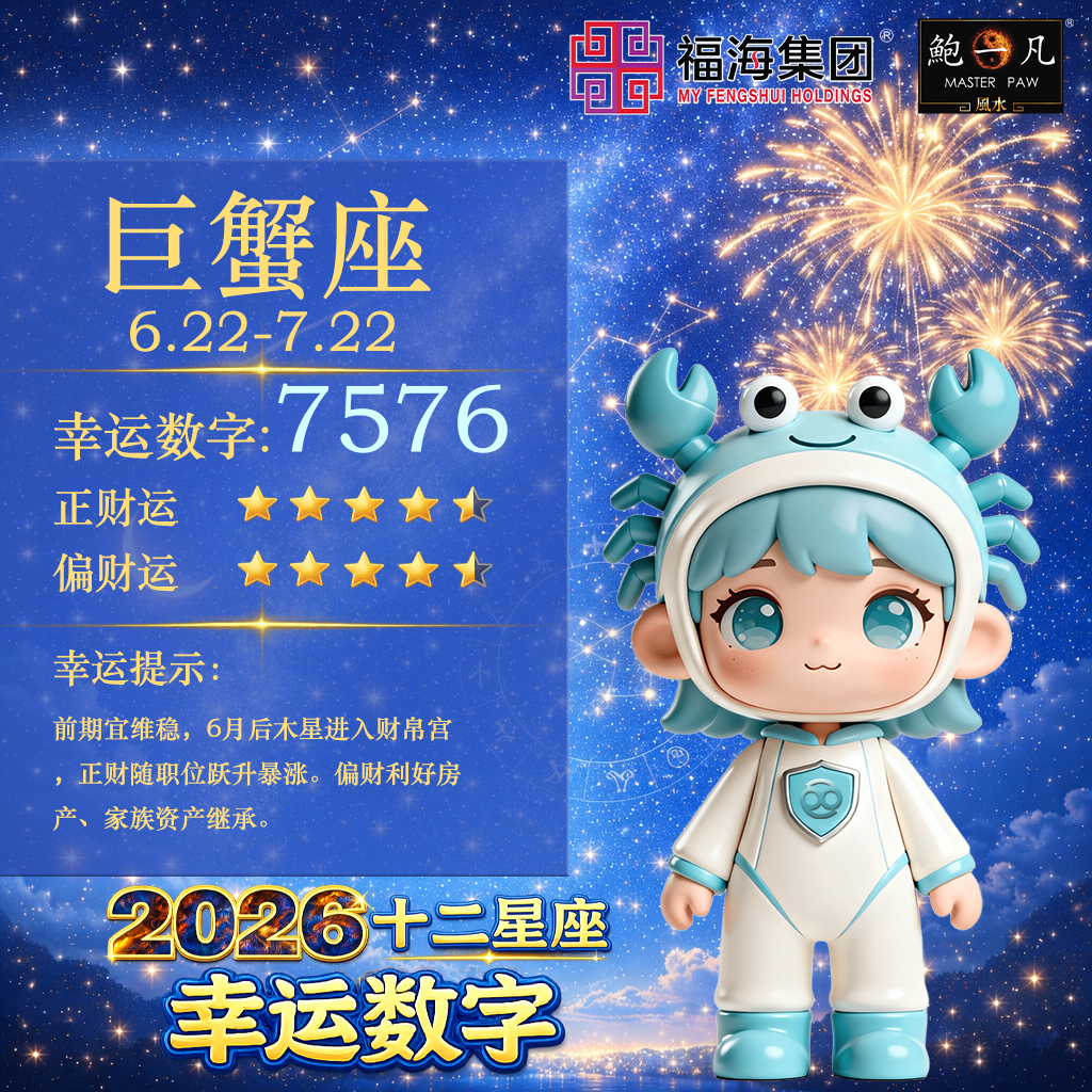 踏入2026年,十二星宫及宇宙能量场正经历着微妙的重组,为了帮助大家在波动中精准捕捉财富契机,鲍一凡老师首次为各个星座求得了【2026十二星座幸运数字】,同时也会针对每个星座的财运,给出幸运提示,希望大家能够守住财富底线,开拓增值空间。