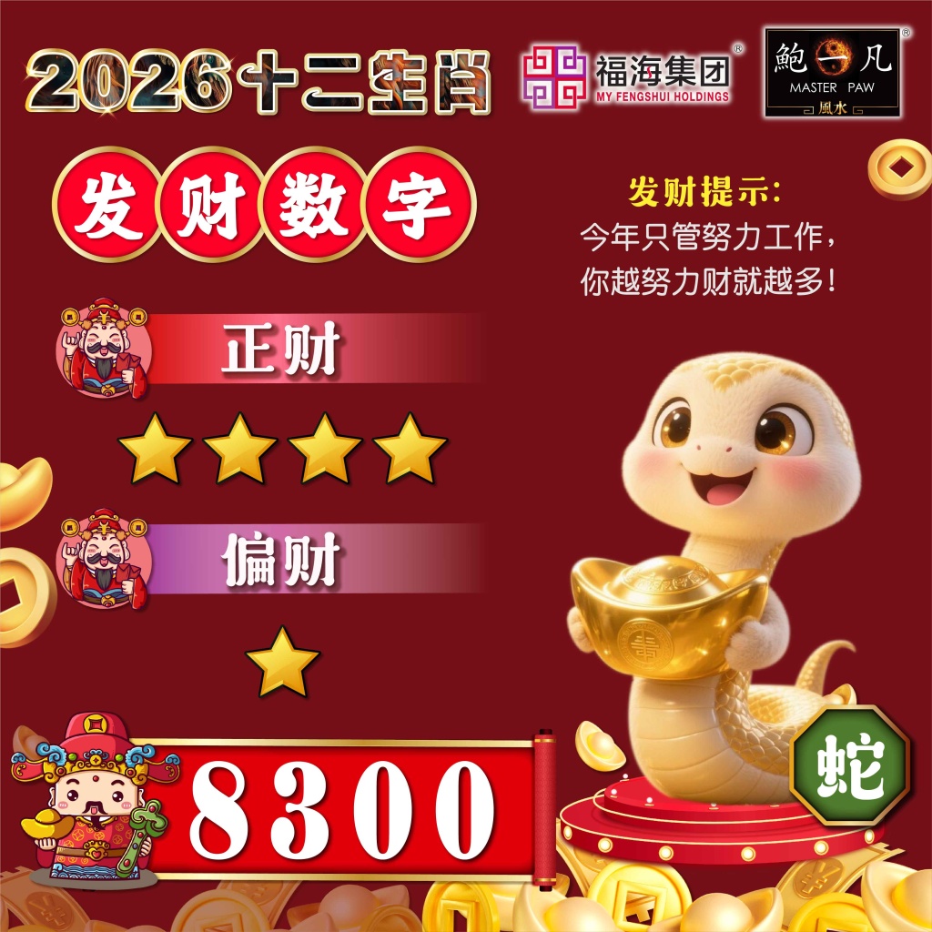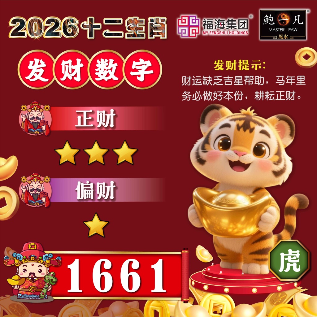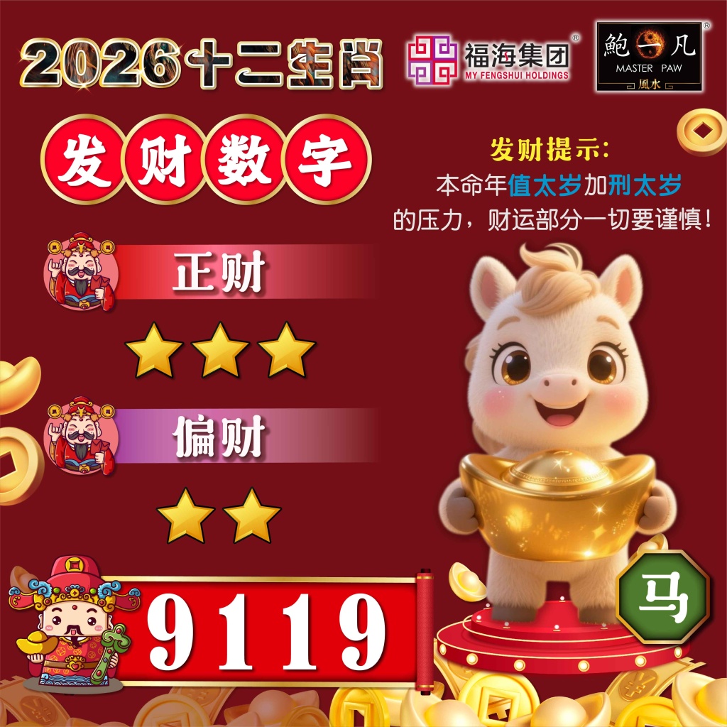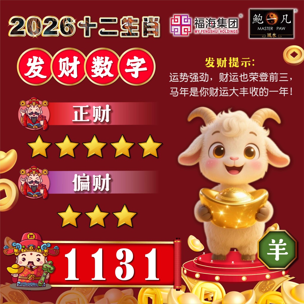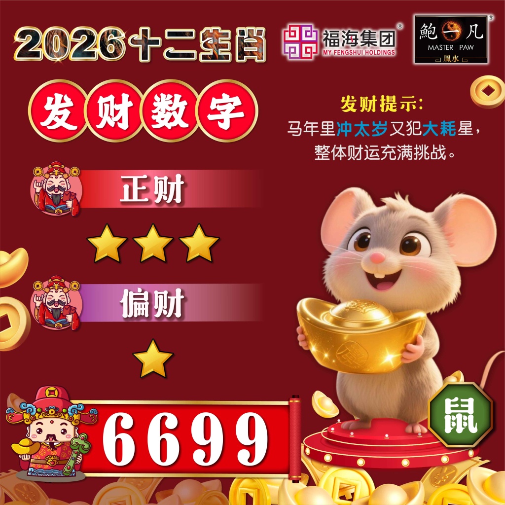 以上就是【2026十二生肖发财数字】了,欢迎大家随缘参考,说不定你的生肖会跟发财数字结下缘分,被财神眷顾!最后,鲍一凡老师在这里祝愿大家,火马年马到功成,一本万利兴旺发!