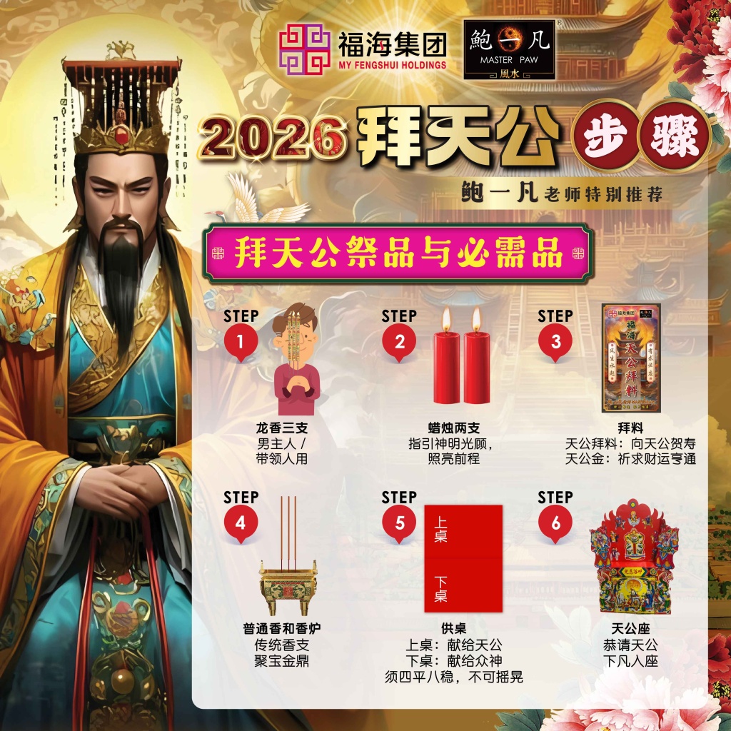 鲍一凡老师推荐使用【福海天公拜料+福海天公金】,能向天公祝寿,以及祈求财运亨通。