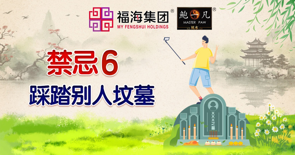 大家都知道坟墓是逝者的安居之所,而在坟地有形形色色的坟墓,有的建得高有得建得低,因此一旦没注意可能就会踩到别人的坟墓,这其实是非常忌讳的,因为这就好像别人在破坏你的家一样。所以去到坟地要多留意你的脚步,即使遇到难走或拥挤的小道,也不要贪图方便直接踩踏或跨过别人的坟墓,尤其是别人的墓龟(墓碑后的小山),那是安葬遗体的地方,随意踩踏或跨越是对逝者非常不尊重的行为。