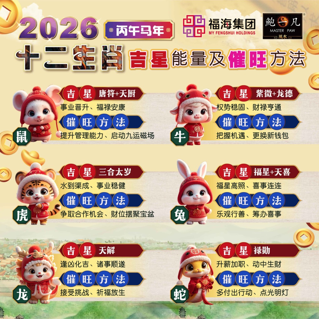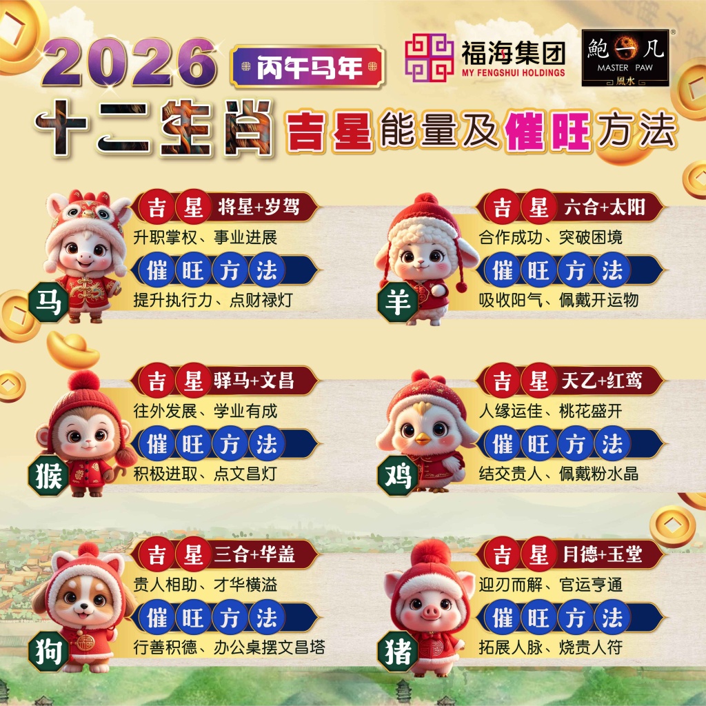 马年到来,意味着生肖运势的走向即将大洗牌,其中有凶星带来的负能量,也当然会有吉星在旁助旺你;那么,在马年里你的生肖会有什么吉星,而你又知道怎么利用它们来帮助你吗?今天,就让鲍一凡老师来教大家如何催旺你吉星的能量!