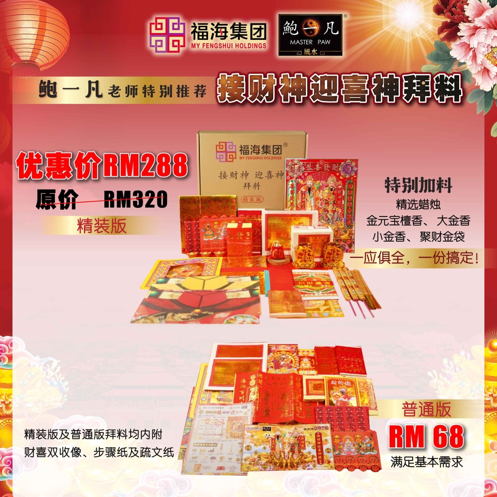 【2026福海接财神迎喜神拜料 - 普通版】,原价RM68,适合第一次接财神迎喜神的人。虽为普通版拜料,但流程完整,同样能完成正式接引。
