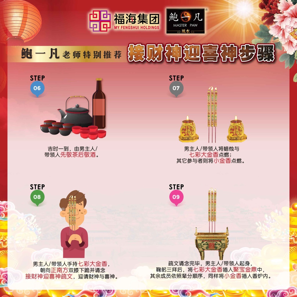 一切准备就绪后,就可以根据下列的接财神迎喜神步骤一一进行了!