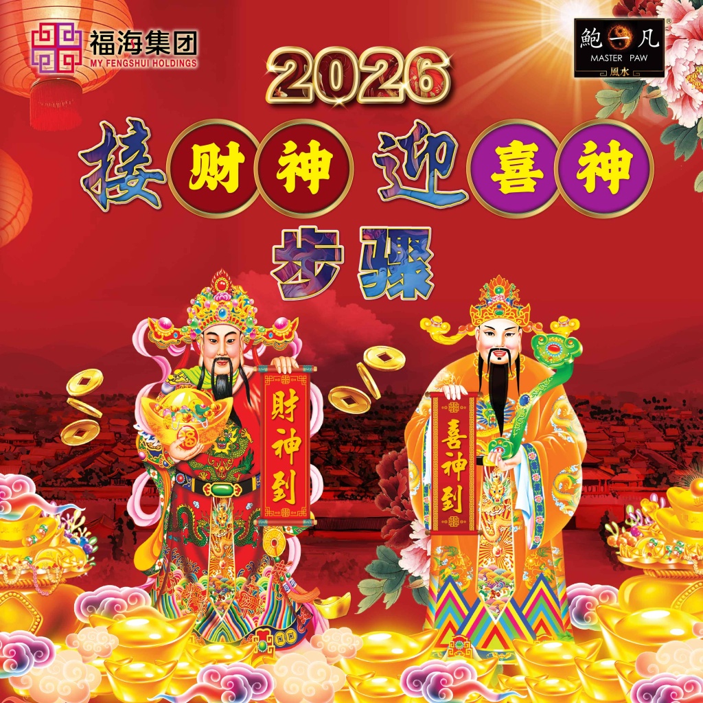 每年接财神不只是习俗,更是为新一年正式开启财运之门;而2026丙午马年,能够同时迎接财神与喜神,更是难得的天时吉缘。丙午马年又与九运相合,象征红红火火、快马加鞭、运势全面启动。把握这一刻,让财来、喜到、好运一整年!