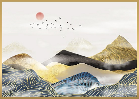 约而言之,这幅画作有数类风水象征:其一:“金色”是指“飞黄腾达”,寓意腰缠万贯富甲一方、其二:“黑色”说明“五行属水”,比喻钱源广进聚水招财、其三:“蓝色”类比“心如止水”,阐述精神安定身体健康。除此之外,其“红日”象征“如日中天”,比喻齐聚以上福分,于是绽放光芒!因此这幅画作寓意深远,兼有现实功效,固为不可多得的风水佳作。