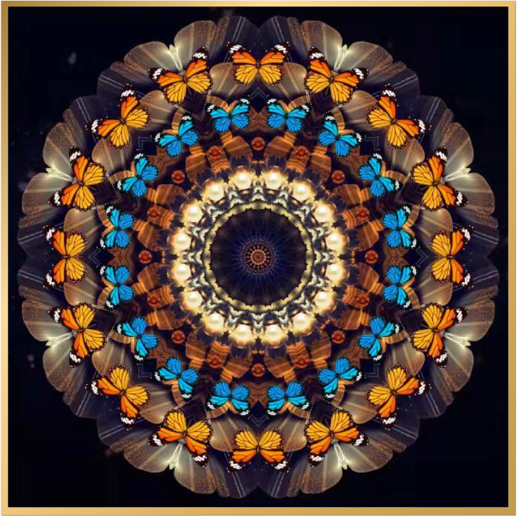 曼荼罗乃佛教经典艺术。其原意为“圆形”,象征教徒修行之道场。根据专家解释,这类画作以描绘佛教“万象森列,圆融有序”世界观为主,同时亦传递宇宙“融通内摄”的境界。因此民间普遍相信,它具备“驱散邪气纳福呈祥”之功效。职是之故,福海集团乃推出《万缕千丝》曼荼罗,协助大众纳福招财提升运势。