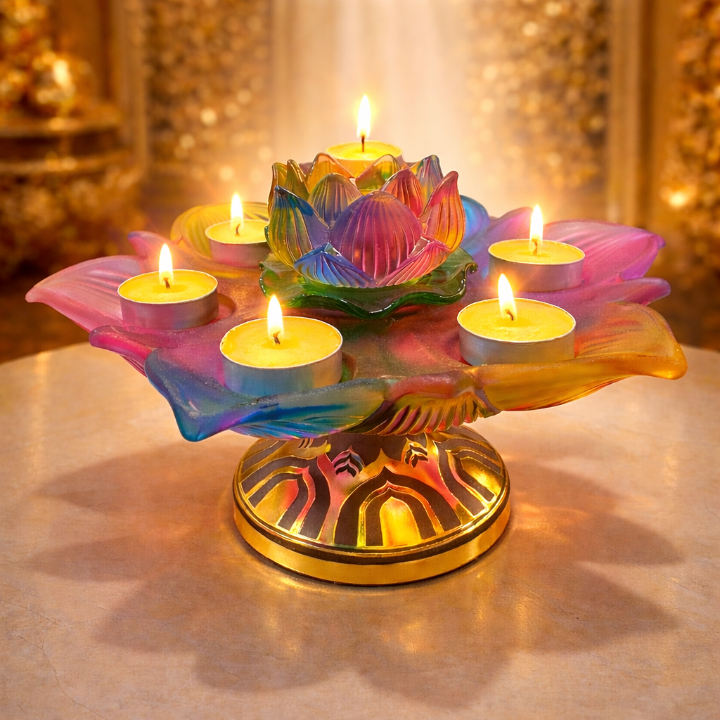 GLAZED LUTUS SEVEN STAR FORTUNE CANDLE