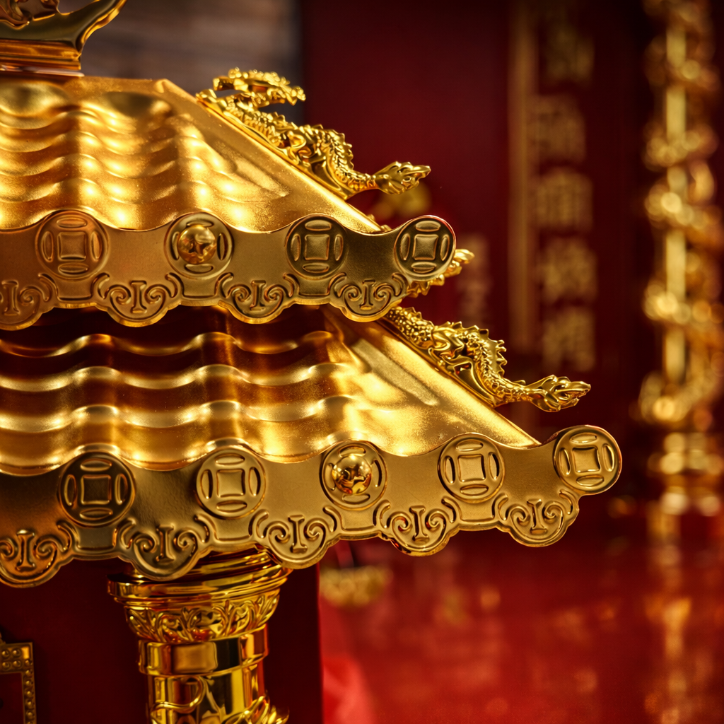 福海天官宝殿属正位之殿,重在定气与稳运。宝殿安放得宜,可凝聚家中正气,使生活与事业循序而行。当家运逐渐归稳,人心自然沉静,行事方向也随之清晰。在财运层面,福海天官宝殿象征财库有位、财流有序。宝殿稳立,寓意财源汇聚、进出分明,使所得之财得以留存,形成持续回流的良性循环,带来长久而稳定的财运基础。