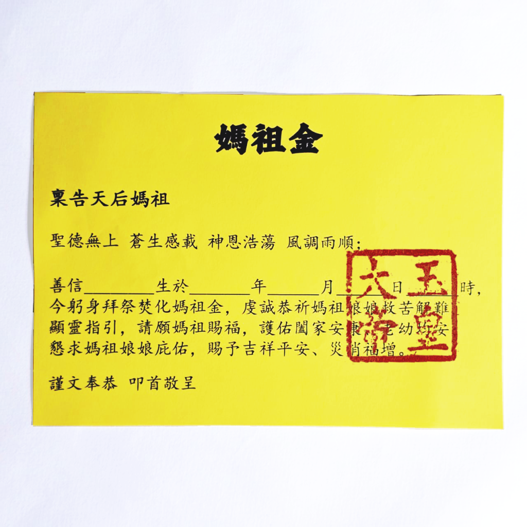 【服务方式】:由鲍一凡老师与专业团队于妈祖诞,为报名参加的信众代烧妈祖金,祈愿出入平安、生意兴隆、合家安康。