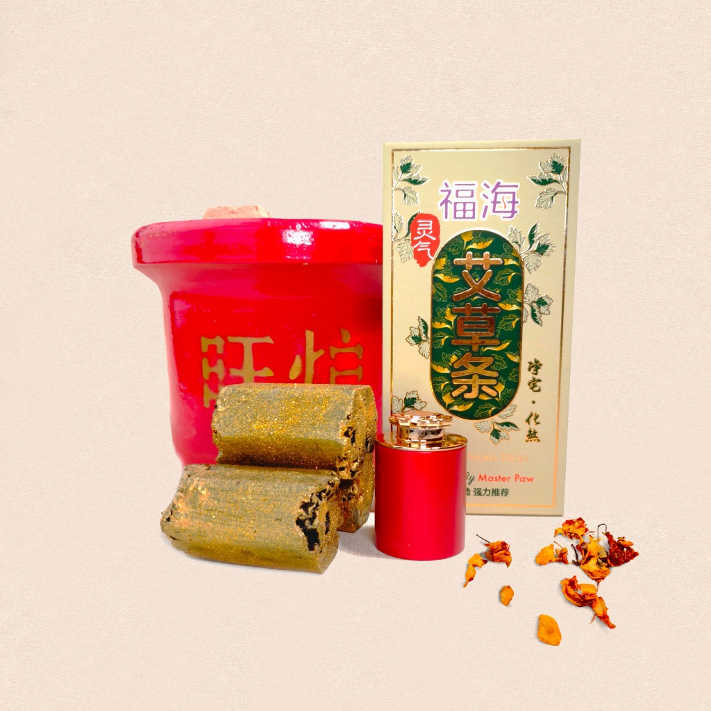 【特别注意】本配套包含:风水红旺炉X1,发财炭X1,福海灵气艾草条 (含底座)X1,福海金莲花X1。