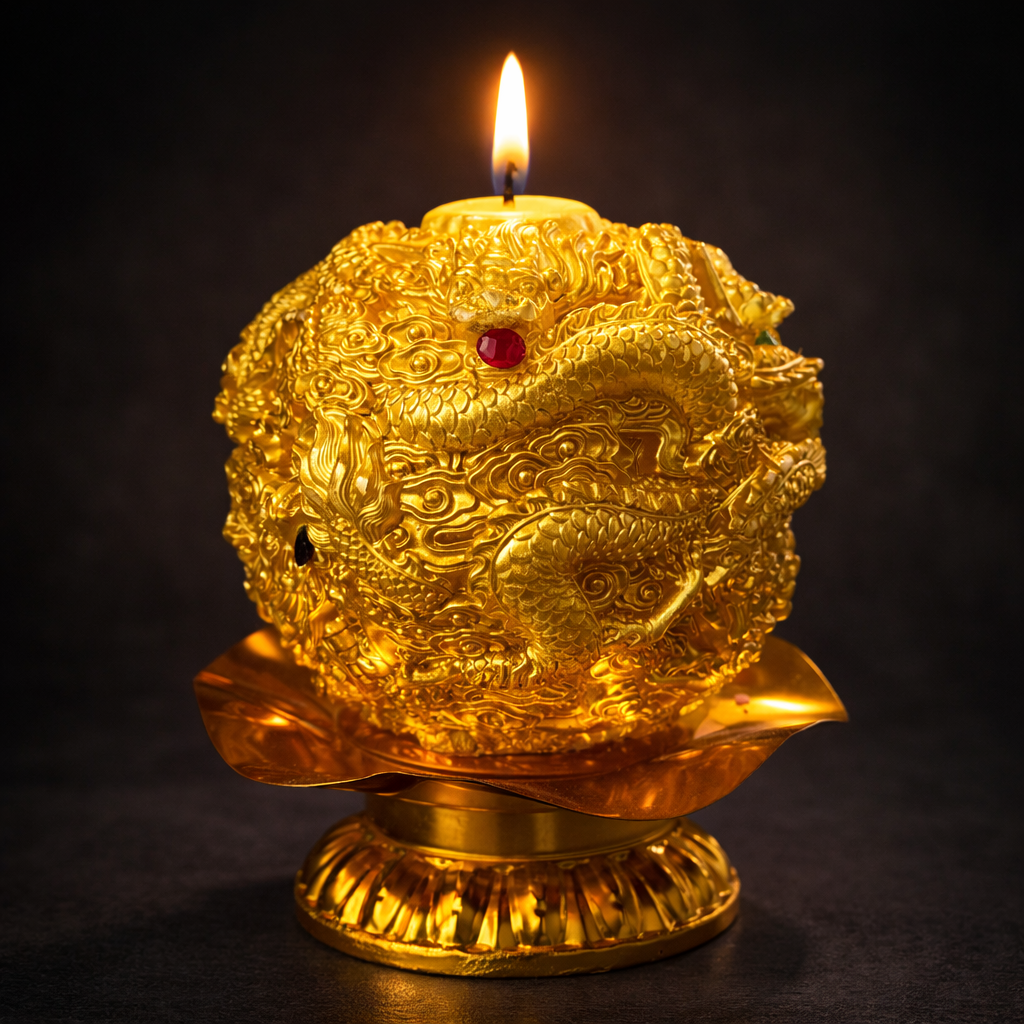 龙转乾坤酥油烛整体造型呈圆而不散,寓意乾坤在握、局势可控。龙象征权势与主导,转象征变化与突破,「龙转乾坤」寓意当运势受限、格局受阻之时,以龙之力扭转走向,使低潮得以翻篇,新局得以展开。