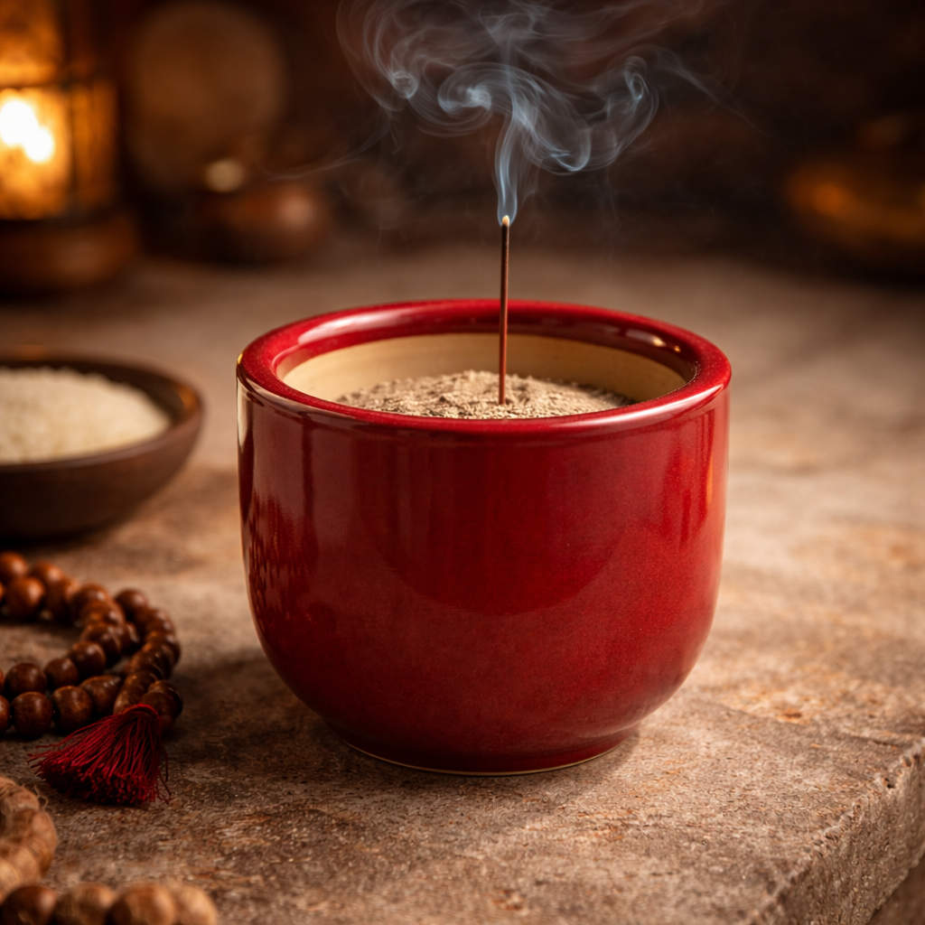 倒入适量香灰,于祭拜地基主时,将本产品直接放置地面上,完成上香仪式将香支插入香炉内。