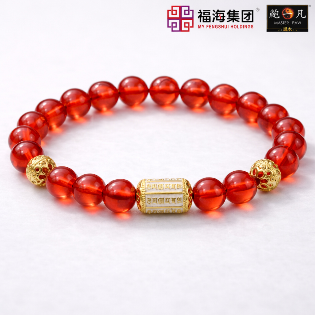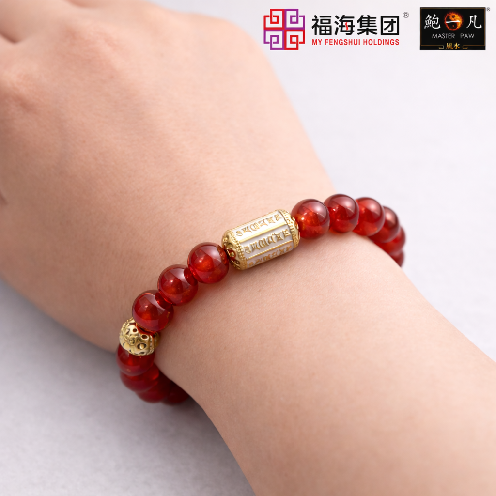 红玛瑙圆珠:作为整条手链的能量基础,象征气血、行动力与持续推进的力量