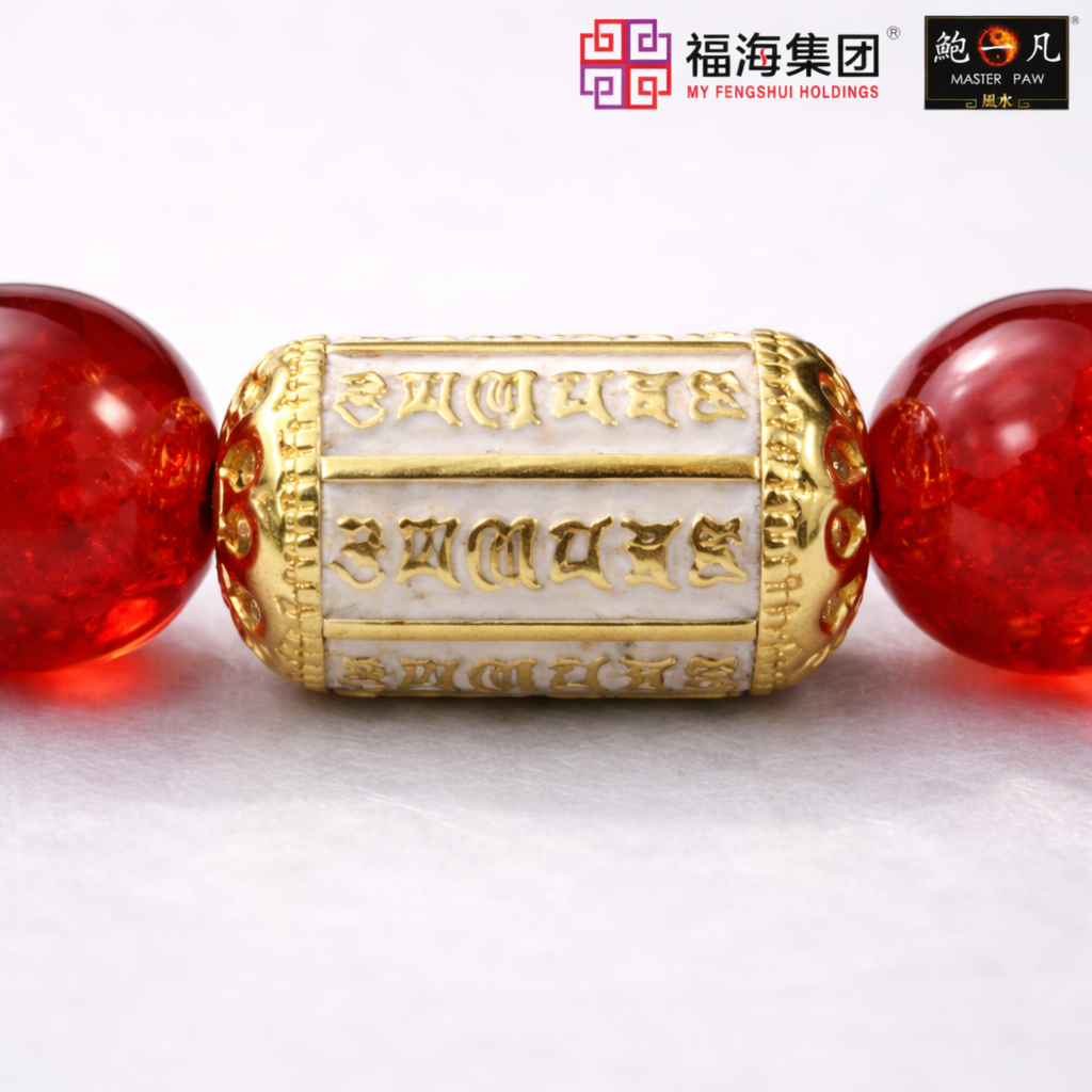 中央为一颗鎏金六字真言转经珠,六字真言环绕其身,象征正念不离、持守本心。