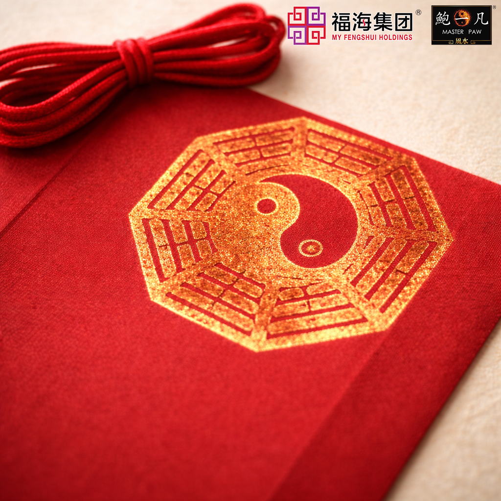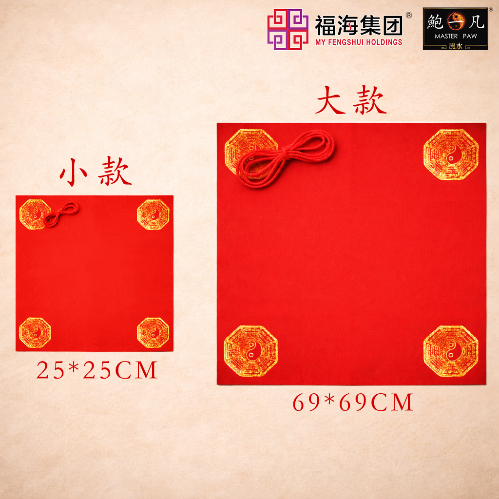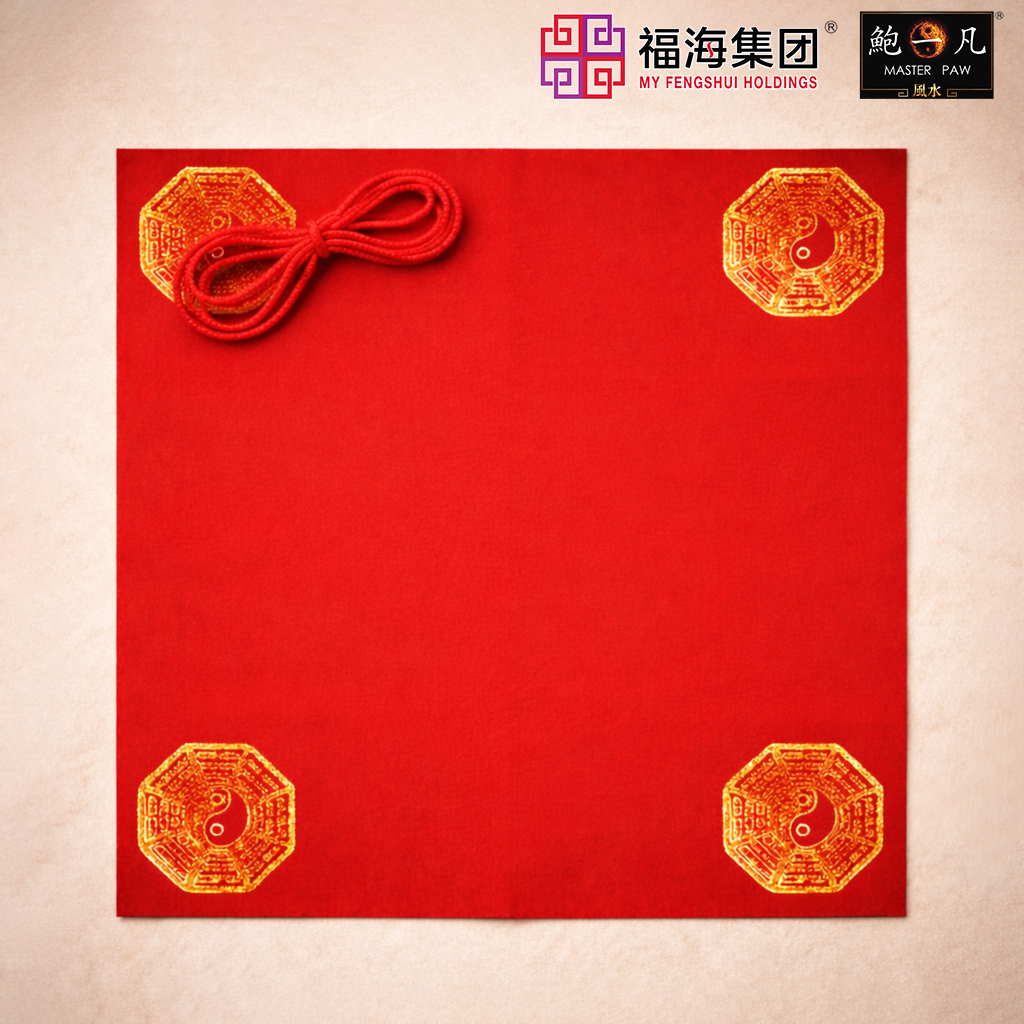 福海御品红纸四个角都有金色八卦印章,把要丢弃的钱包、手链等随身物品放在中间,用红纸包好后再用红绳绑紧,就像帮它画好范围、收好尾。这样可以把用过一段时间留下来的气场稳住、不乱散,让这件物品好好结束,再丢弃时人会比较安心,也不会把旧状态带走。