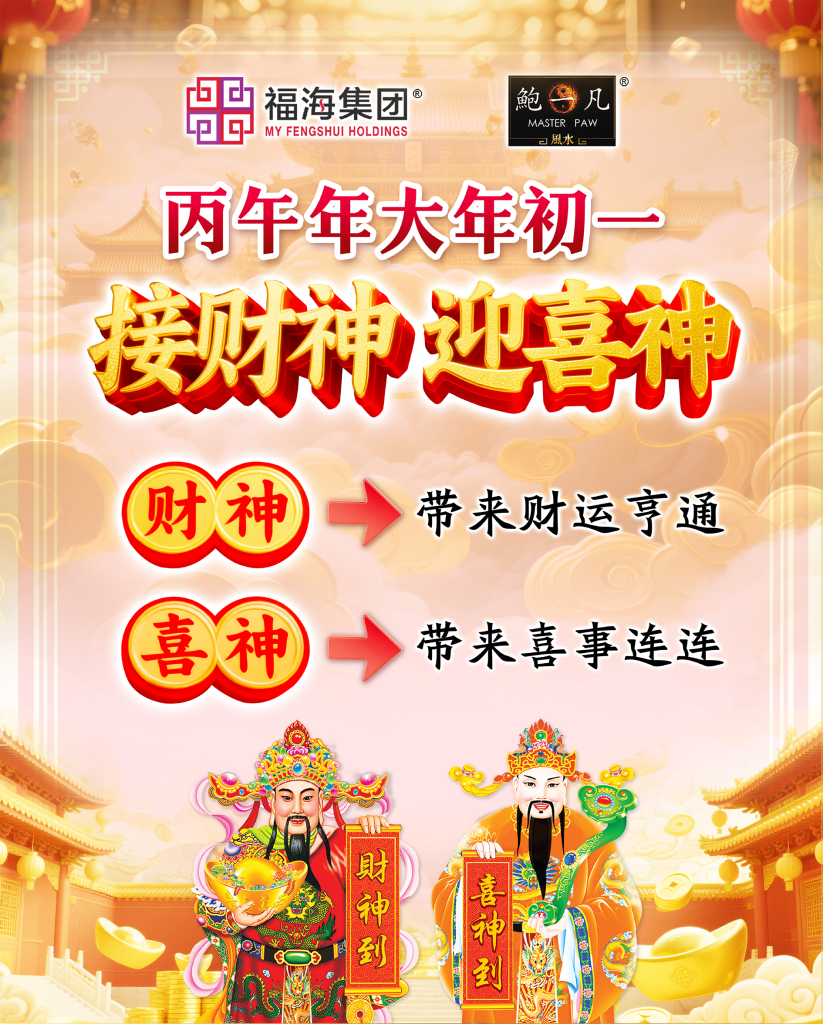 每逢新春佳节,接财神是华人社会不可或缺的习俗,寓意着希望透过接引财神,能让财运变得更好,而丙午年大年初一(17-02-2026),不仅是接财神的日子,同时也是迎喜神的日子,这么做寓意着把喜事接引到家里。大年初一接的财神,就是财帛星君,又称为增福财神,是赐予钱财与富贵的吉神,能保佑信众财运亨通,生意兴隆。喜神,即万喜迎祥天尊,是喜庆、吉祥和婚姻的喜乐之神,能保佑人们喜事连连,助旺喜事与婚姻。