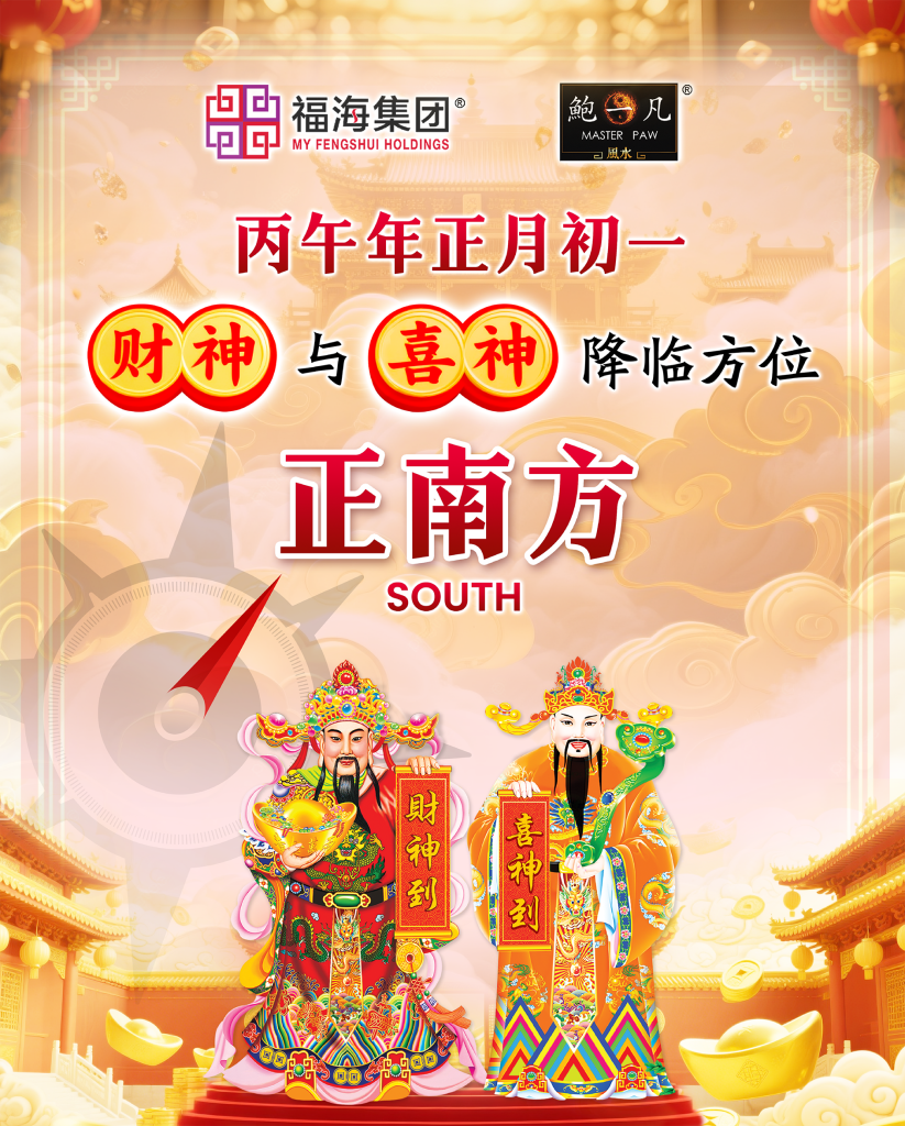 而在鲍一凡老师精心估算后,确定在丙午年正月初一,财神与喜神都会降临到正南方,民众到时只要配合步骤纸上显示的方位,避开凶位就能顺利接来财神与喜神!