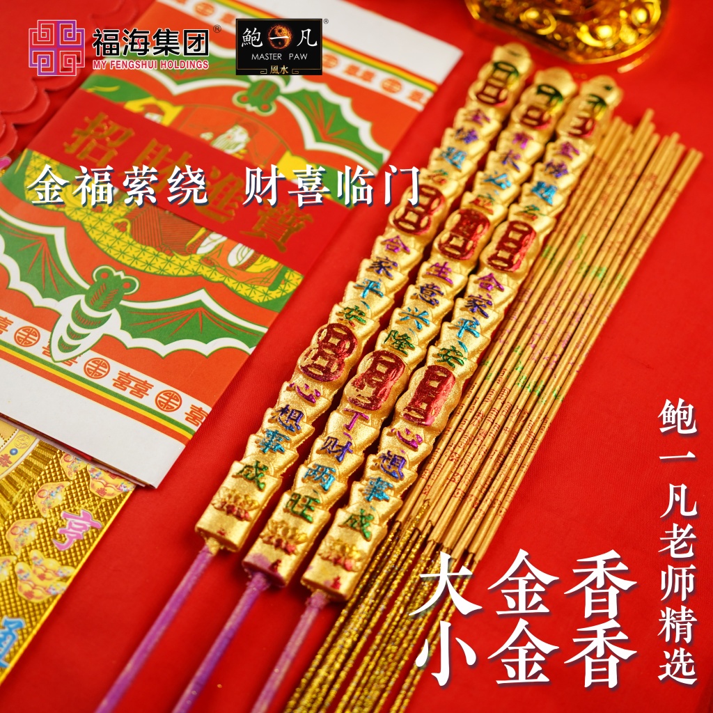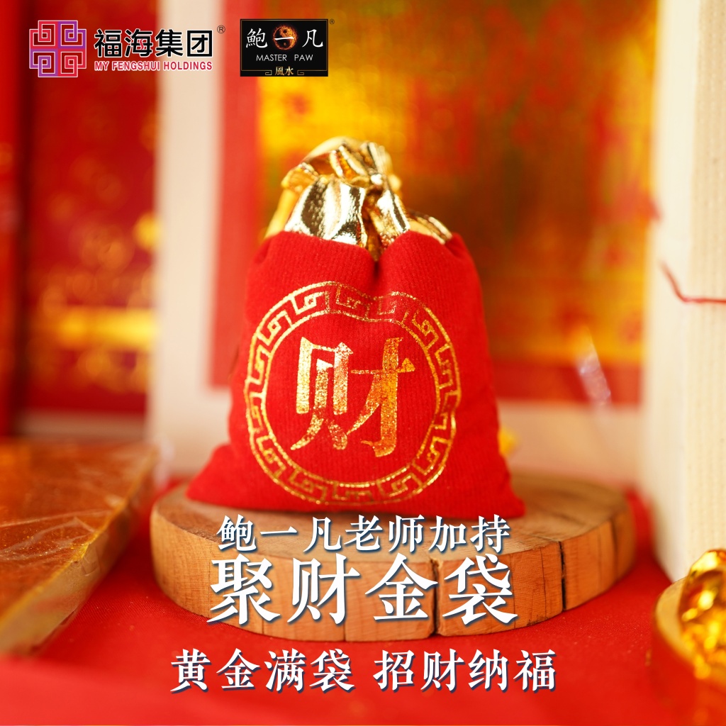 由鲍一凡老师特别加持的供品,是福海接财神迎喜神拜料精装版的最大卖点,红彤彤的袋子里面装满加持过的金条和元宝,藉由鲍一凡老师的深厚灵力,赋予了聚财金袋无穷无尽的招财神力。