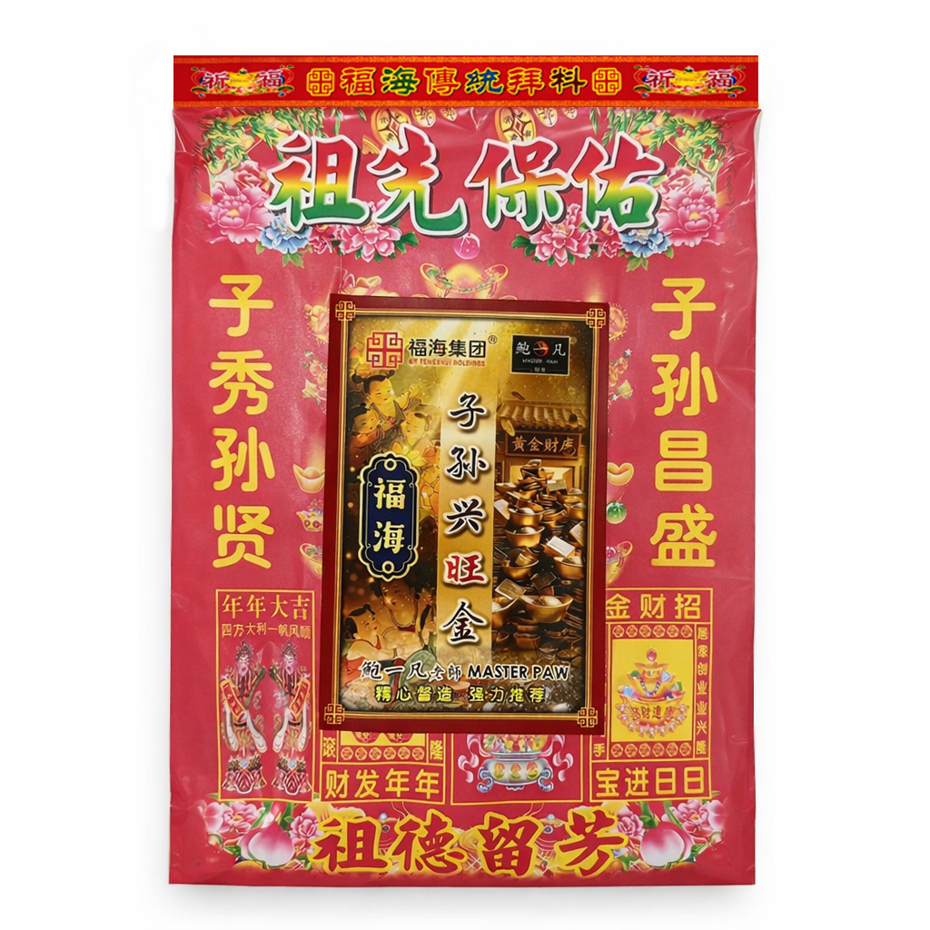 | 风水产品名称: | 子孙兴旺金 PROSPEROUS DESCENDANTS JOSS PAPER |