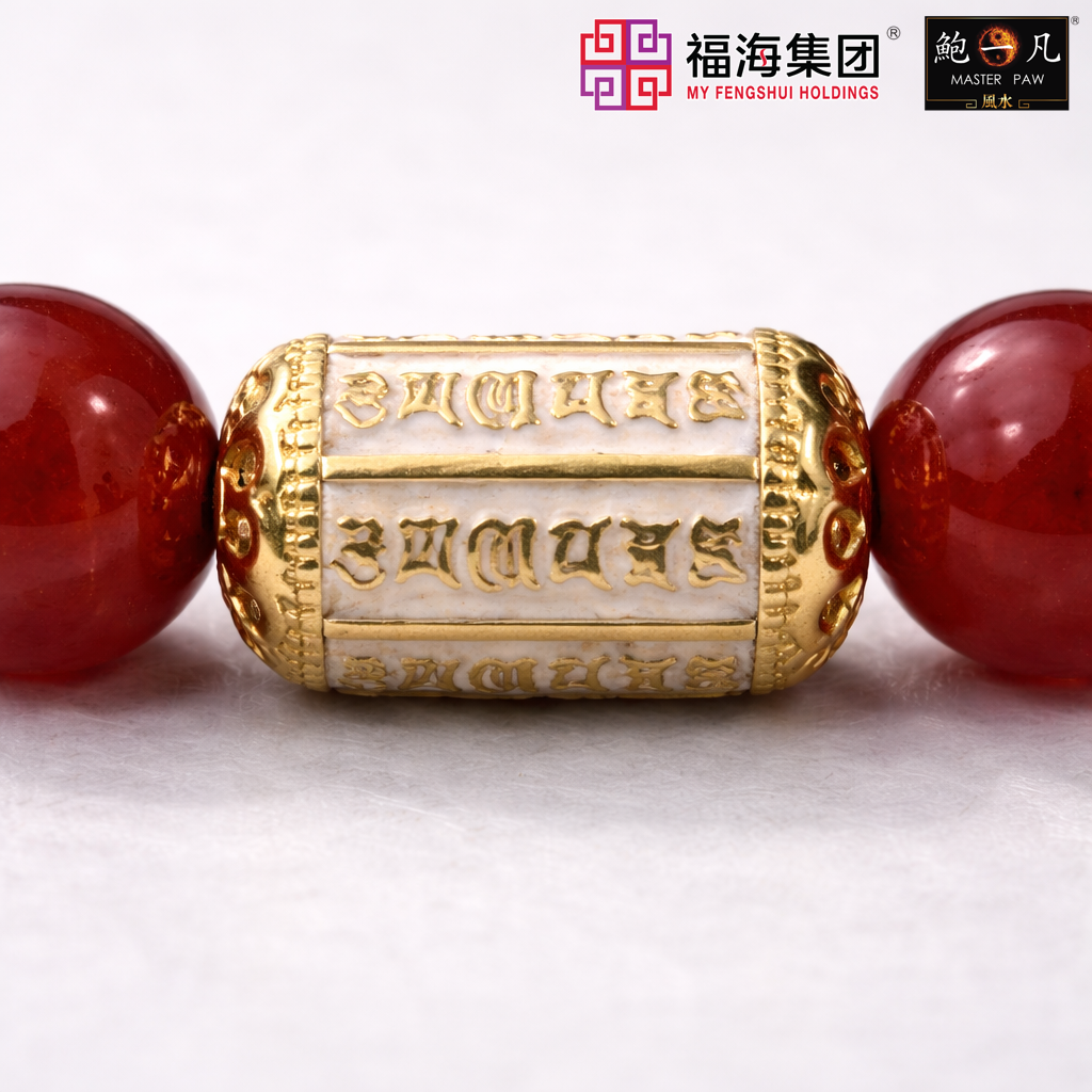 红玛瑙圆珠:作为整条手链的能量基础,象征气血、行动力与持续推进的力量