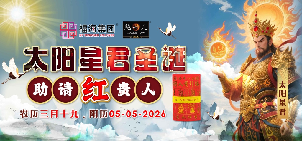 由鲍一凡老师率领专业团队,于太阳星君圣诞吉日依仪设坛祈福,恭请太阳星君加持,并配合诵经、祈福、供奉及助请红贵人仪式,为善信祈愿消灾解厄、祛除阴邪、治病延寿、事业顺遂、家和兴旺,愿得太阳星君护佑,阖家光明,诸事吉祥。