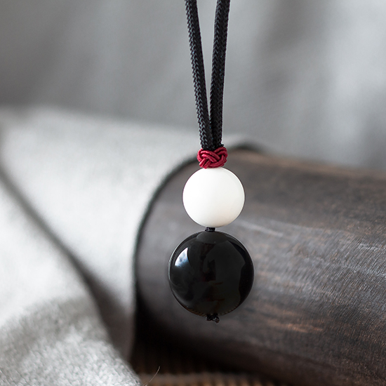 白砗磲黑曜石葫芦吊坠(Tridacna Stone and Obsidian Gourd Pendant)是由白砗磲(Tridacna Stone)与黑曜石(Obsidian)这一双在宝石界中号称黑白无常的驱邪避凶能手的结合。