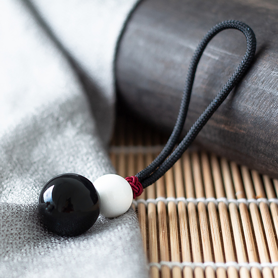 葫芦寓意着“创世与赐予”,象征着吉祥,同时也意味着“福禄”和“护禄”,是驱妖除魔辟邪镇宅的宝物。而白砗磲拥有着纯粹能量,能有效提高人体灵气,激发潜能,养身调气,使人精神更平和。因此,黑曜石与白砗磲一黑一白,一个增进能量,另一个则安神静气,两者结合的葫芦更是相得益彰。