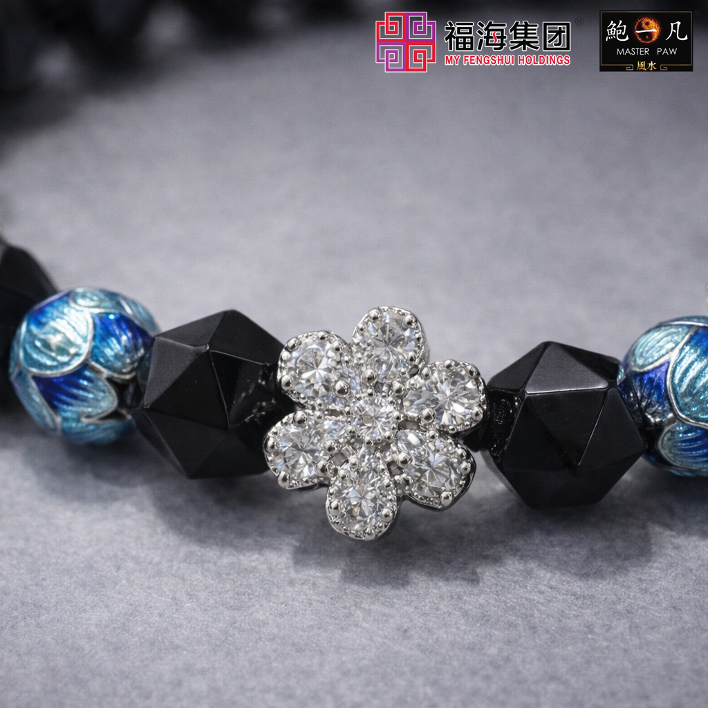 蓝色珐琅雕纹珠:左右点位配置,象征流动、智慧与缓冲,使能量不至于过沉