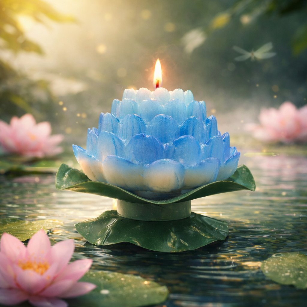 酥油烛主体采用莲花为造型意象,层层花瓣向上绽放,结构由内而外递进,象征愿心由静而生、由净而显。莲花在传统文化中主清净、主觉悟、主愿力承载,寓意所求不染杂念、所愿得其正道。整体色调柔和而不浮,视觉稳定不张扬,使供奉者在点灯时自然收摄心神,令心念专一不散。酥油烛芯居于花心中央,点燃后火焰稳定挺立,形成「一念居中、万愿归一」之象,象征所求之事得以聚焦,能量不偏不散。火焰明而不烈,静而不弱,寓意愿力持续、生生不息。